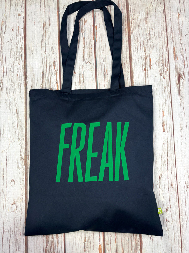 The Freak title text is added in a soft fluffy green flock available on Navy Blue or Teal cotton.