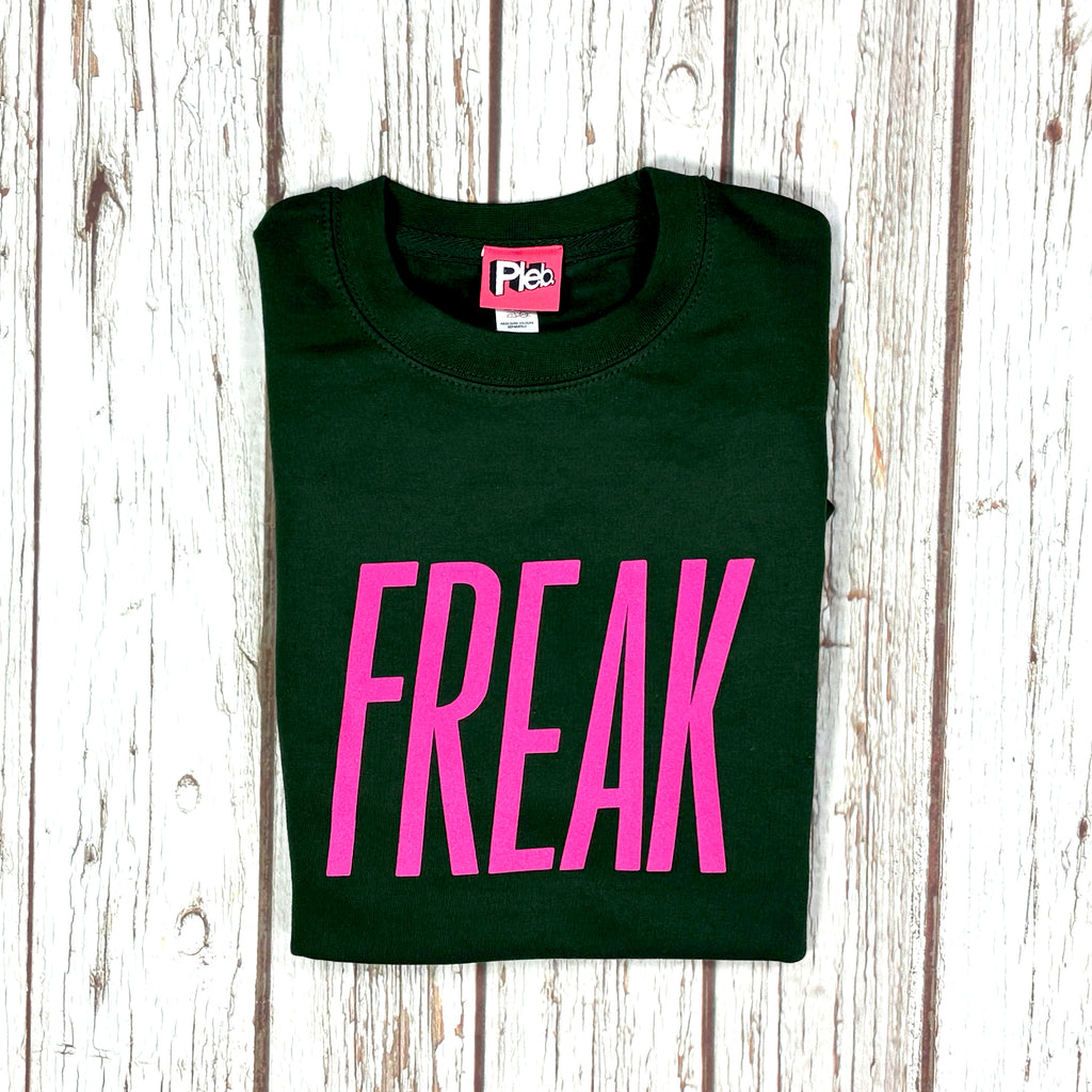 Our Freak design has arrived! It's currently available on our new colour Forest Green!