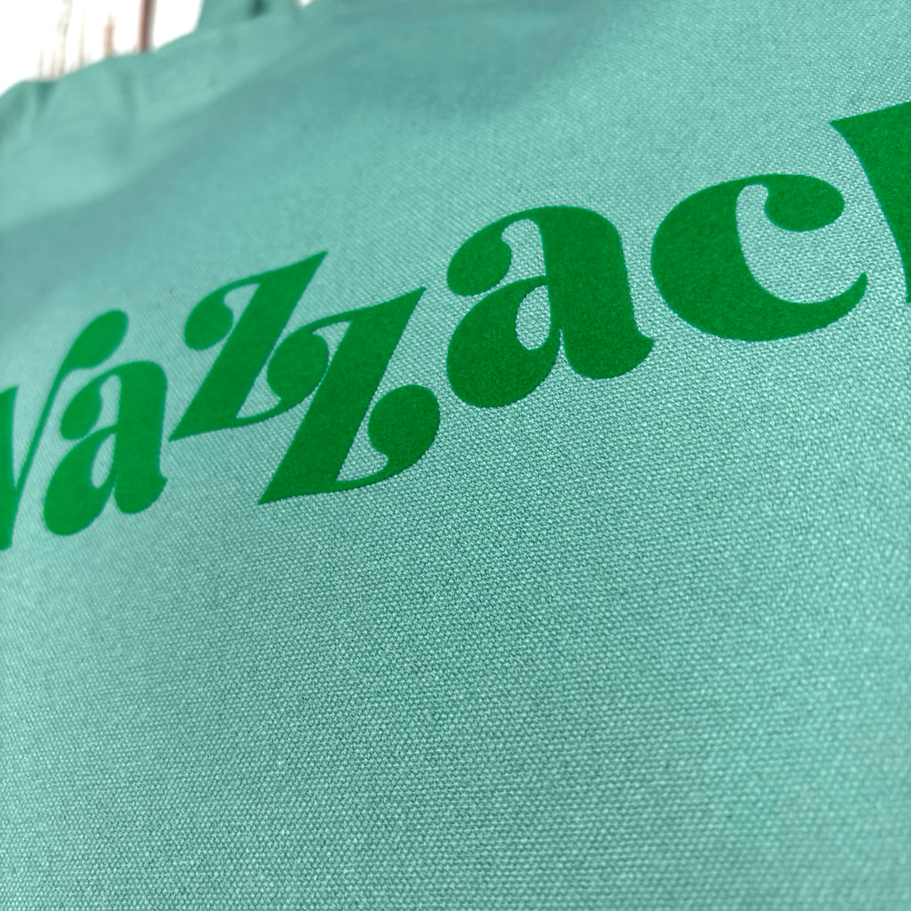 The Wazzack title text is added in a soft fluffy green flock available on teal or Navy Blue cotton.