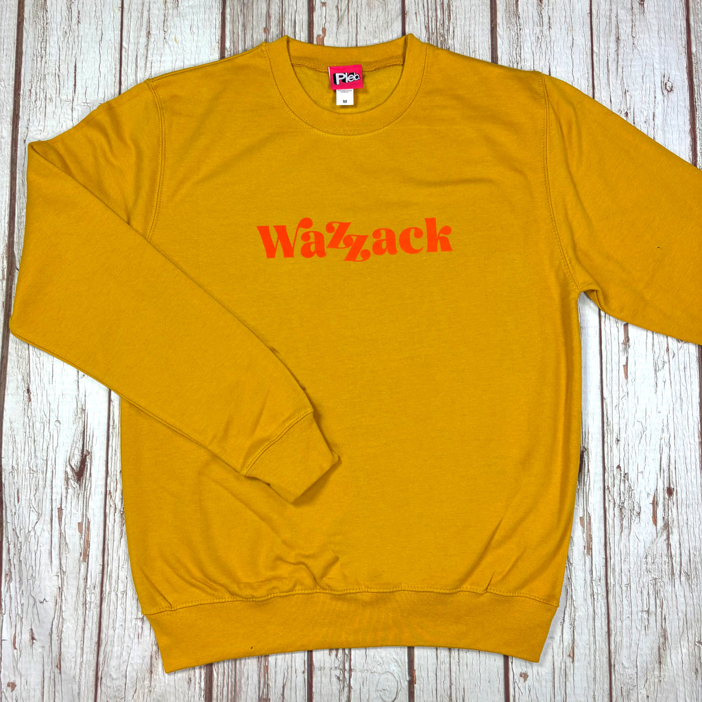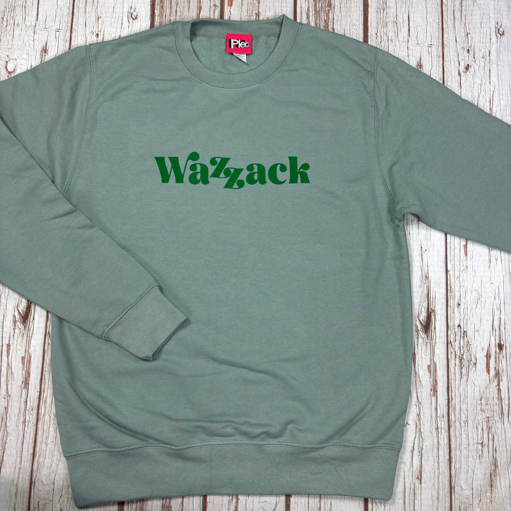 Our wonderful wazzack design has arrived! Available on your choice of eight colours of sweatshirt with eight contrasting flock coloured text.