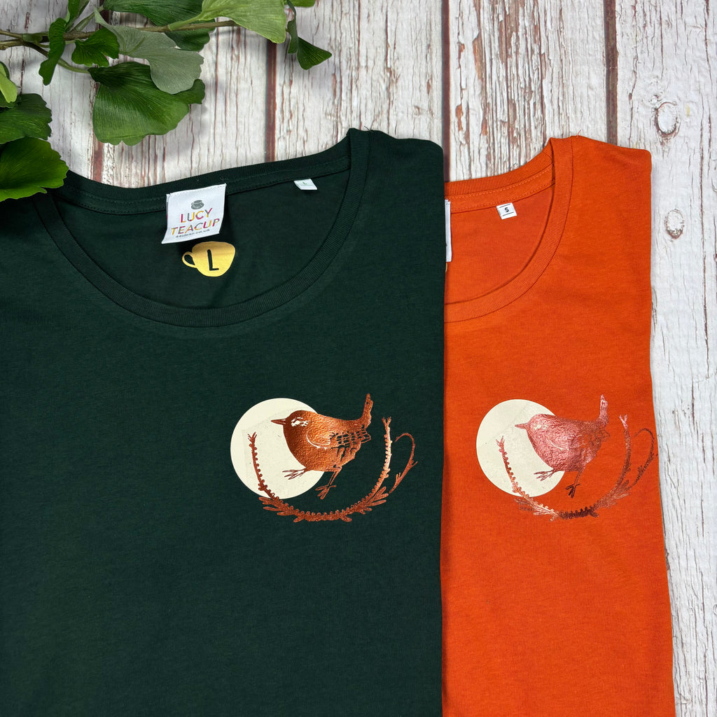 Inspired by my mum's love of wrens here is my little wren T-Shirt using an organic cotton shirt!