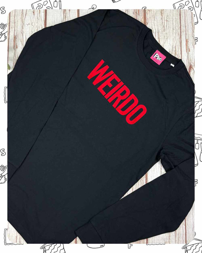Ready To Ship: Unisex Black Long-Sleeved T-Shirt- Weirdo- Size L