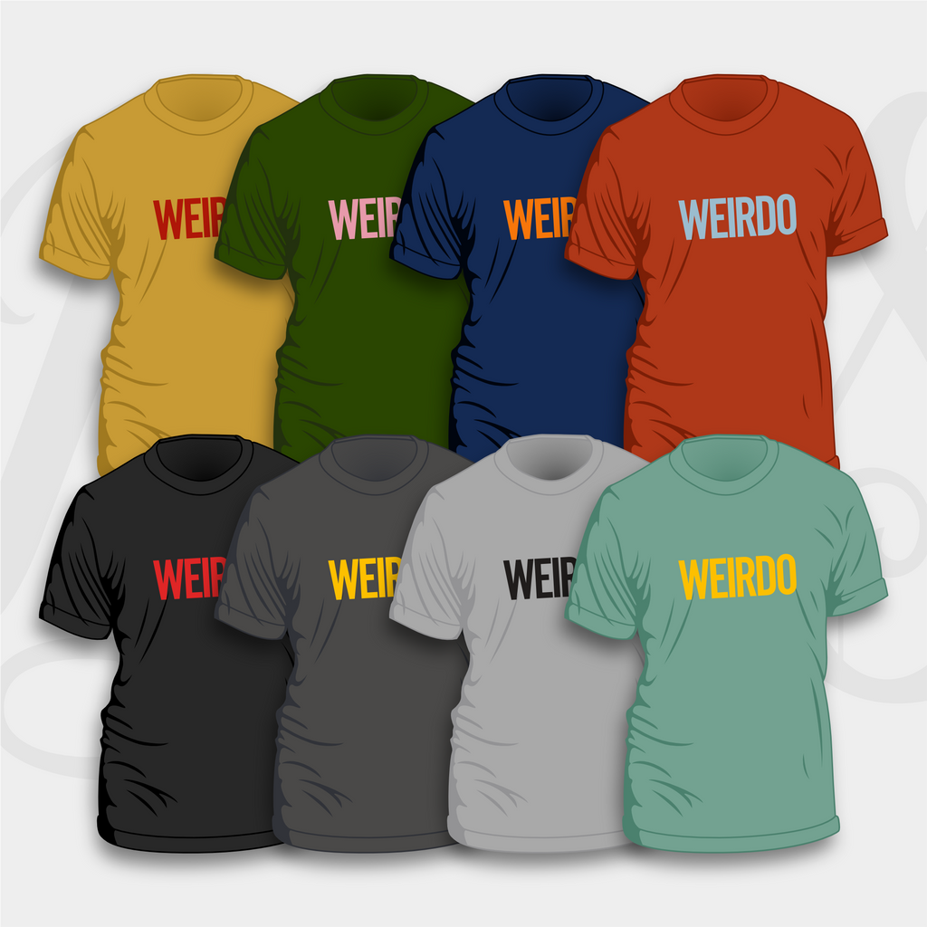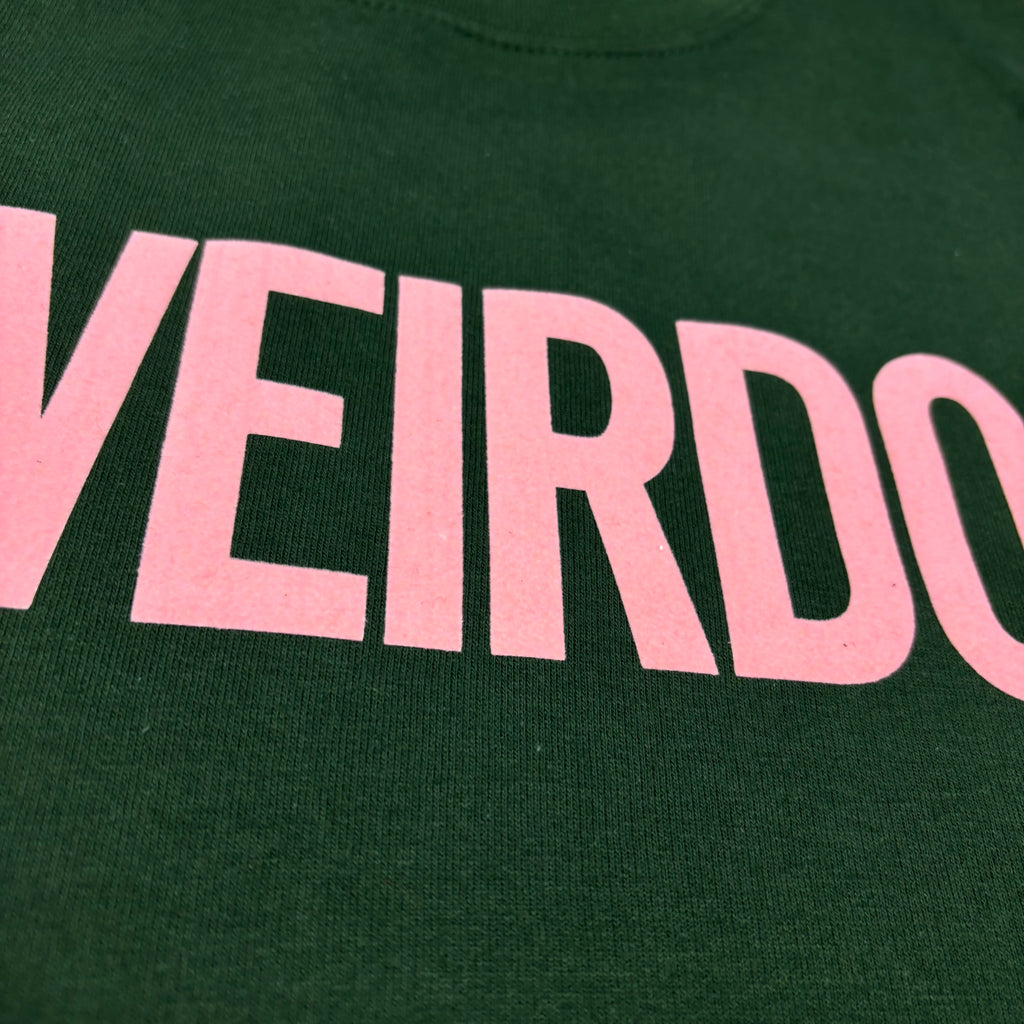 Be a weirdo and proud! These are super soft sweatshirts available in eight colours with different flocked wording on each.