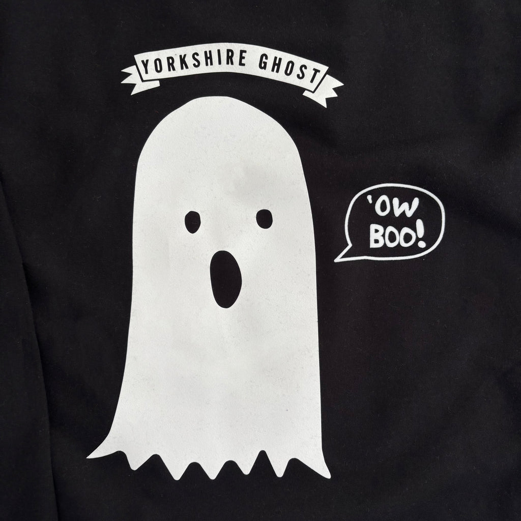 Our Yorkshire Ghost design is hauntingly good! It's a lovely white flock design on your choice of eight colours..