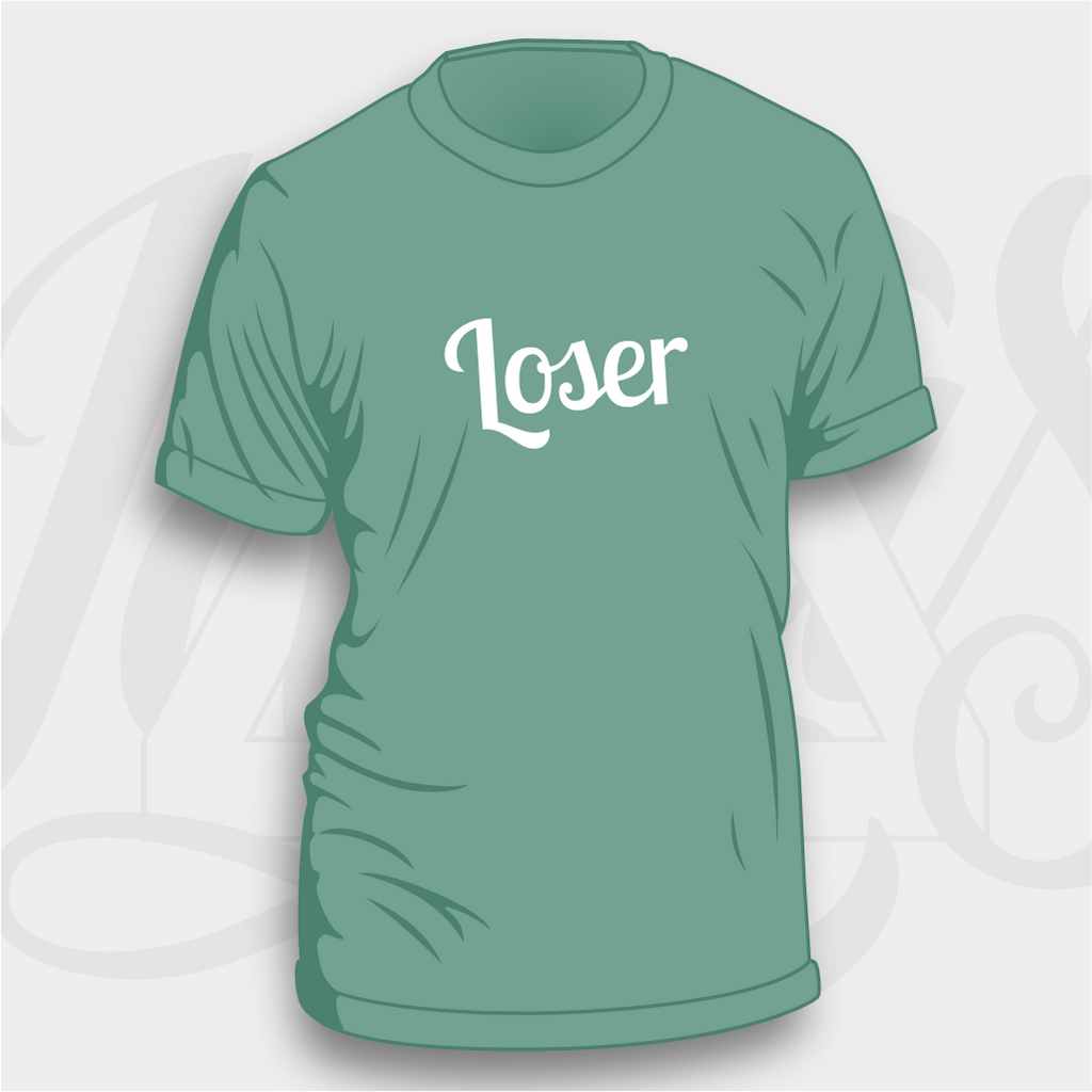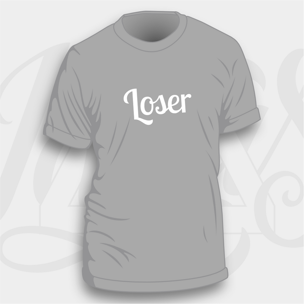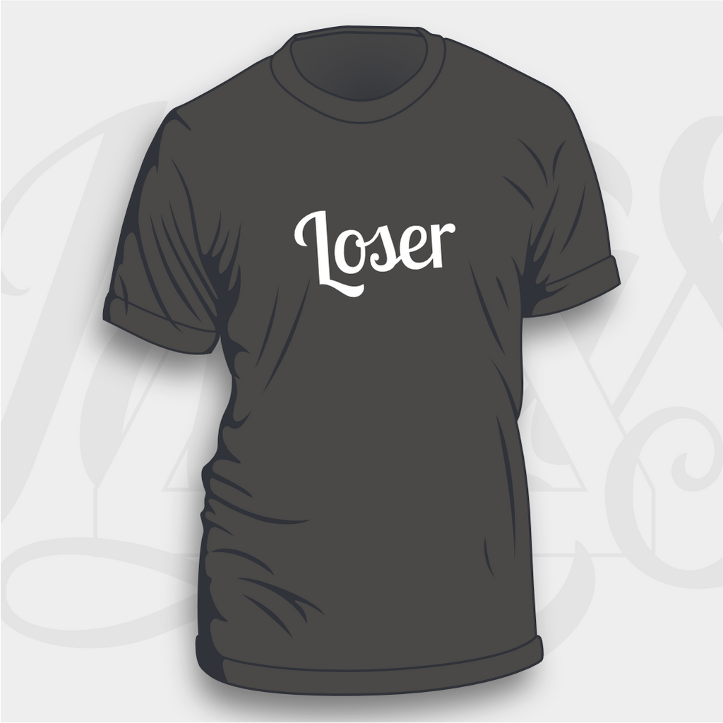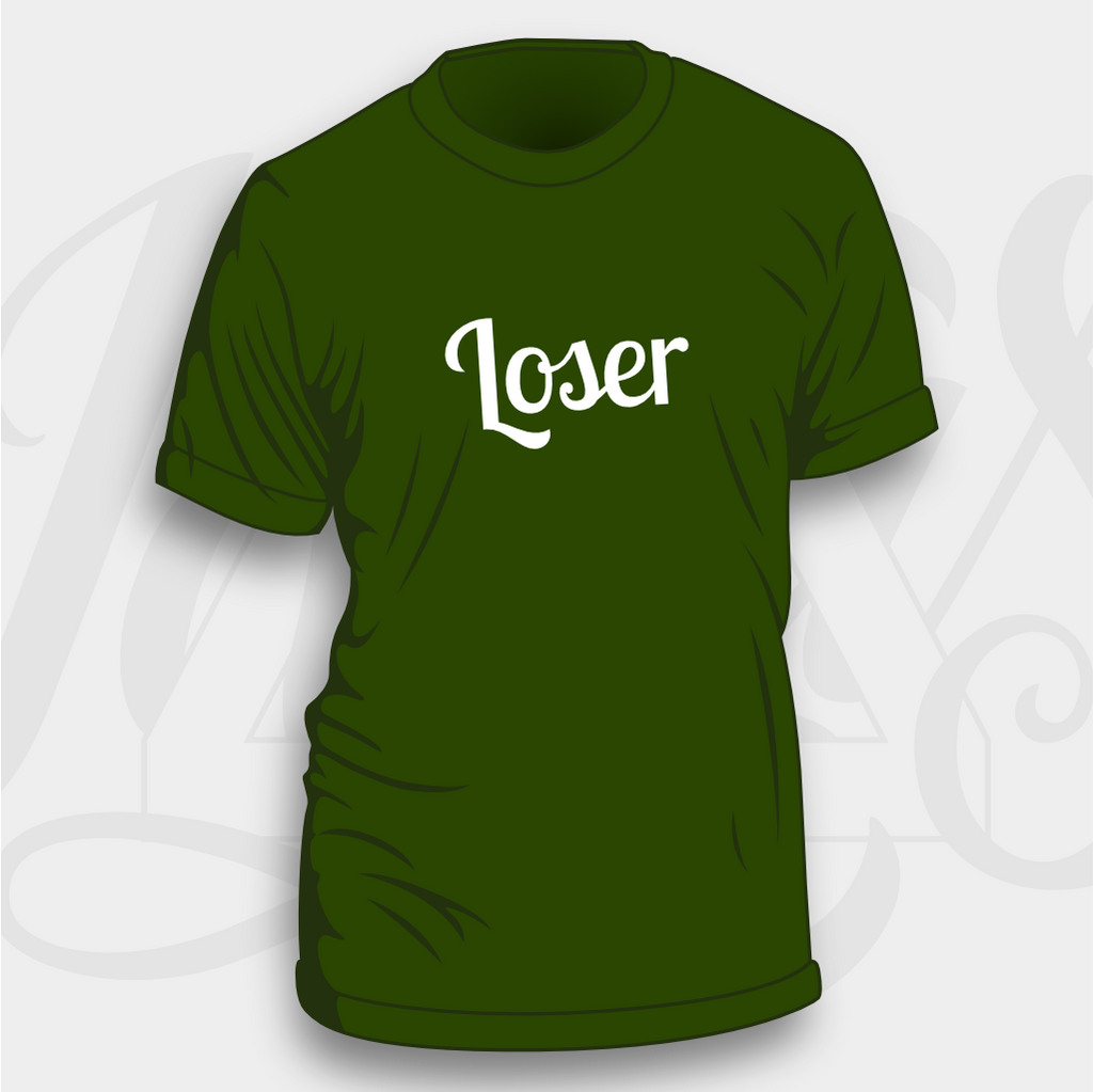 Our Loser badge design has arrived on sweatshirts! Available on your choice of eight colours of sweatshirt with white flock coloured text.